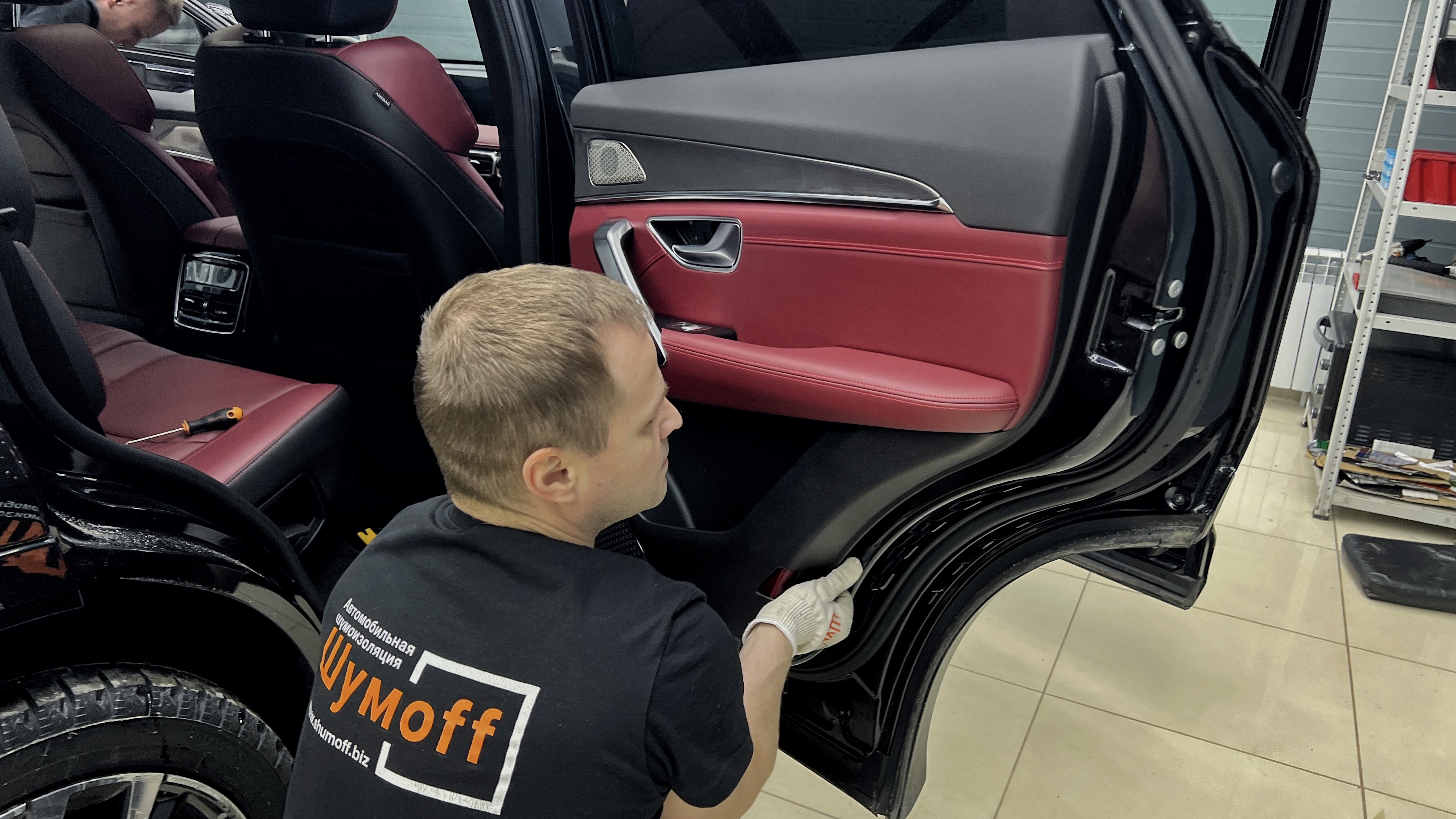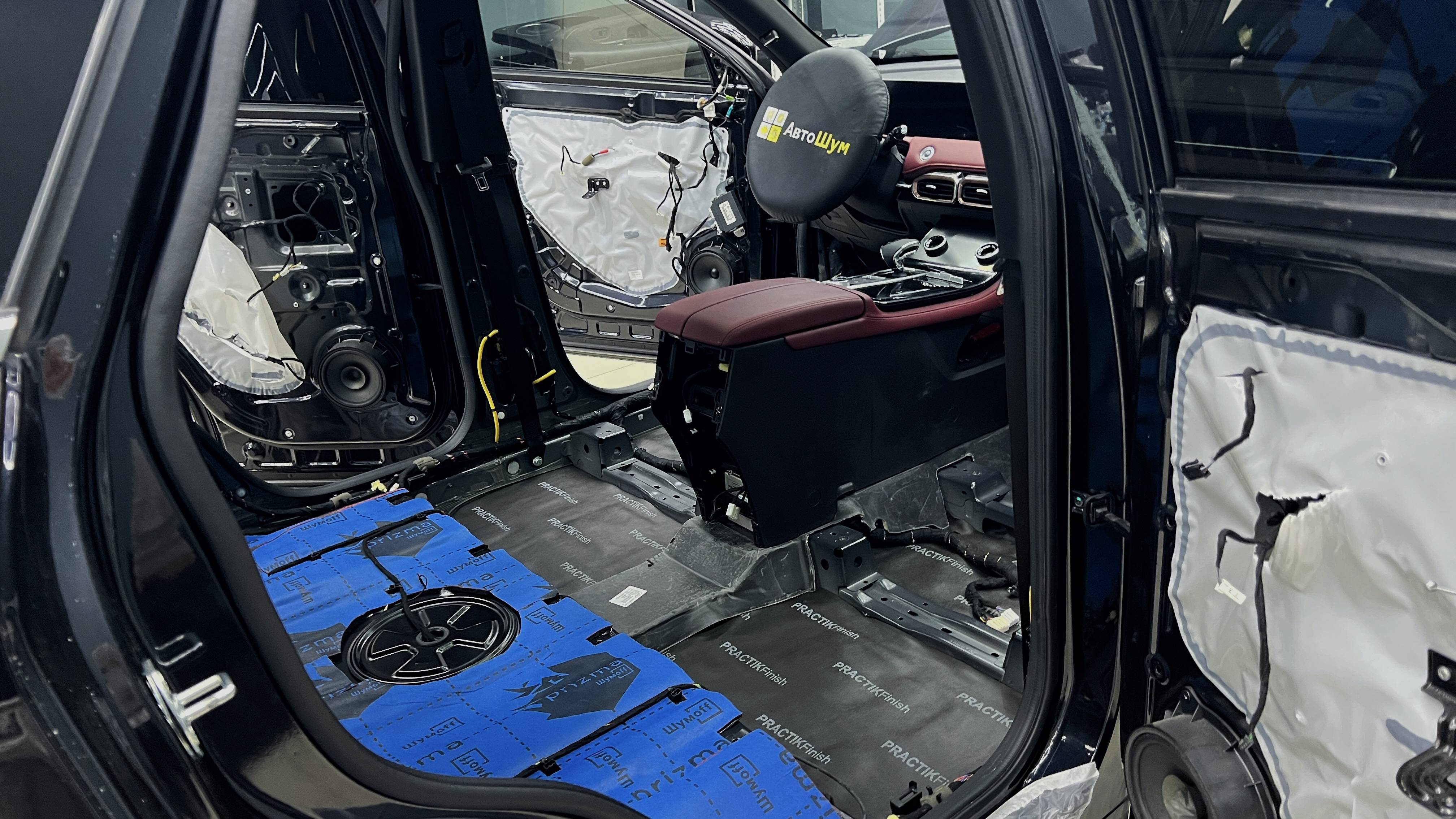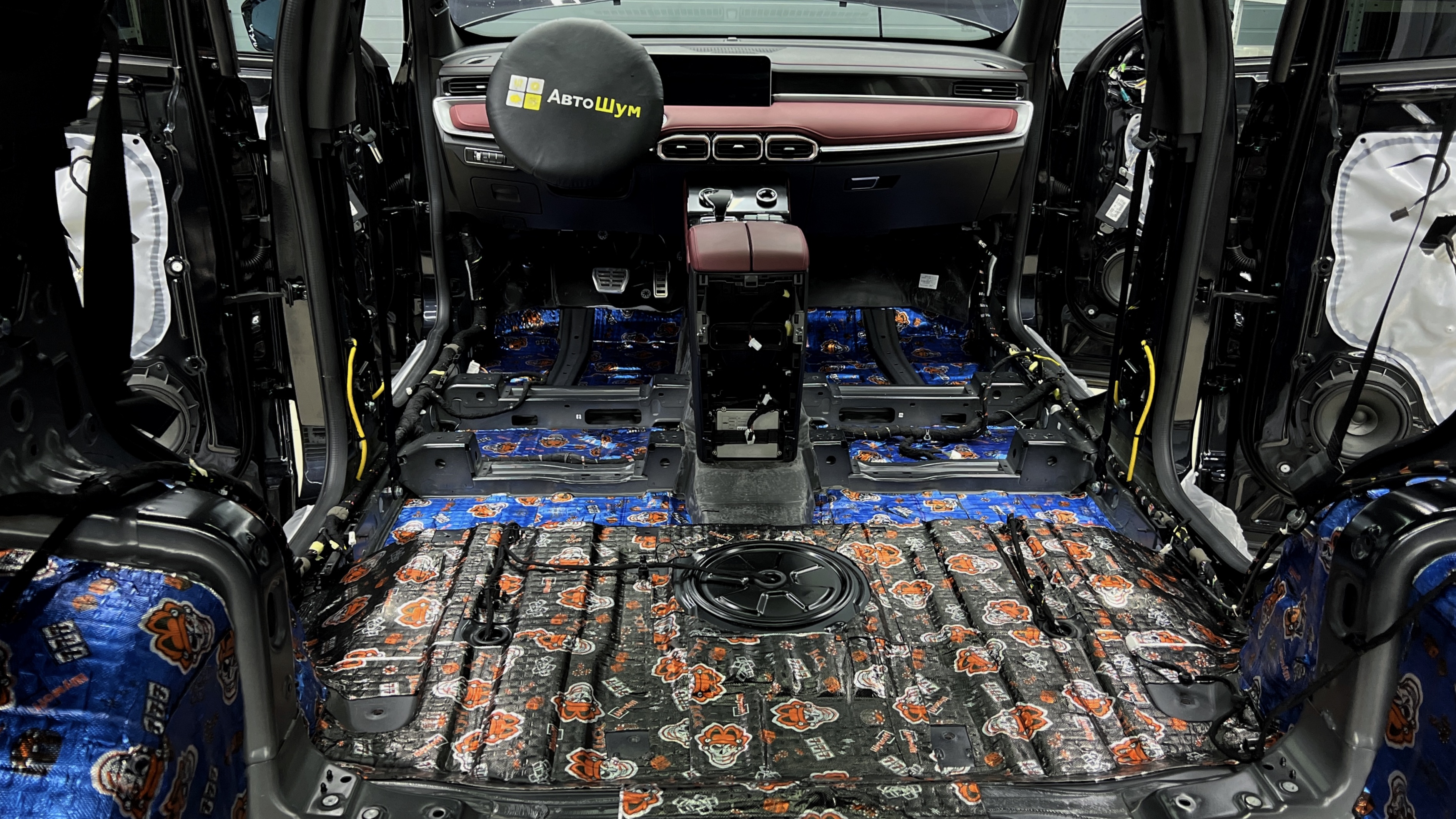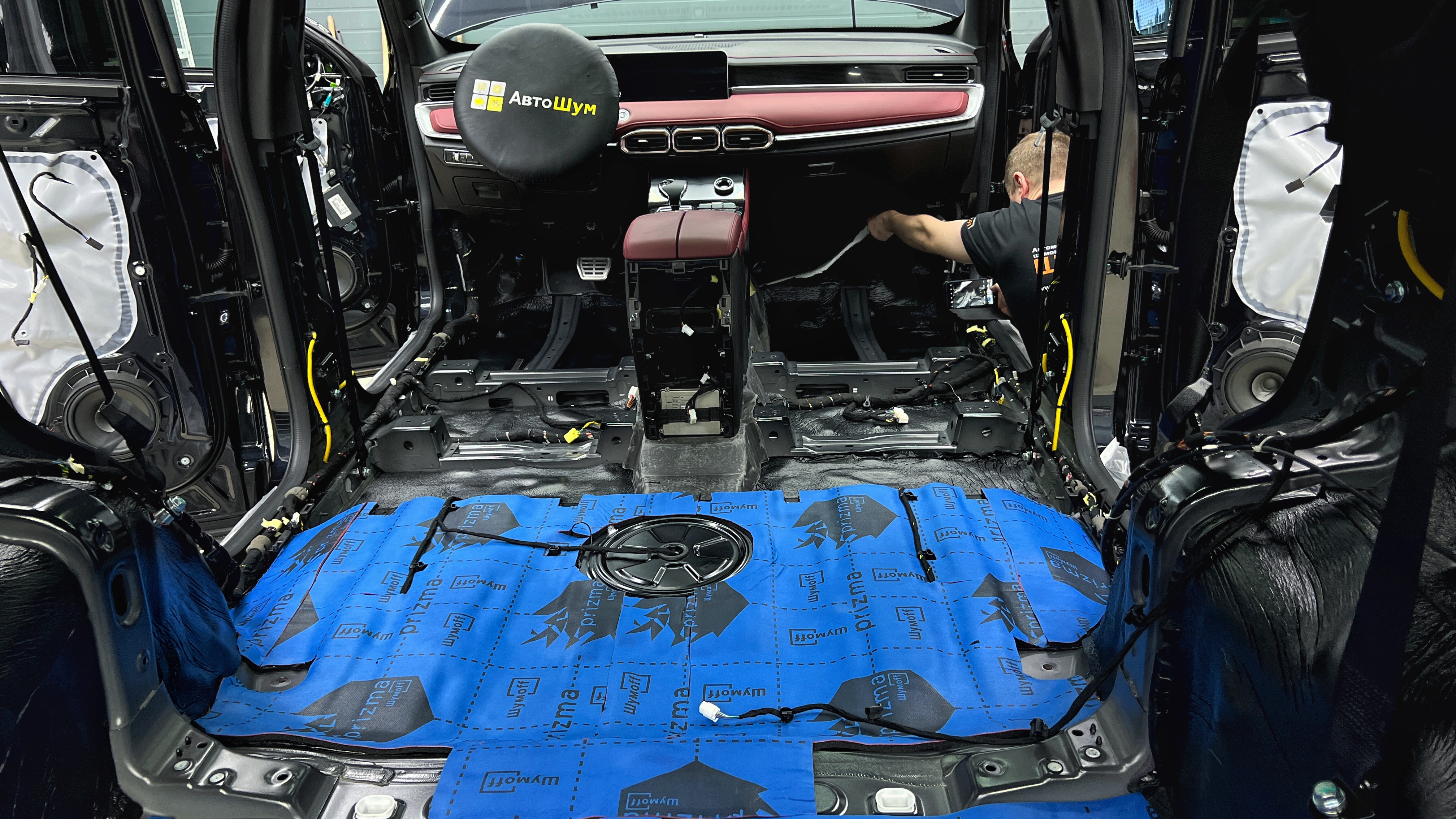 Шумоизоляция пола Джетур X70 поверх второго клеим многослойный тепло-звукоизоляционный материал Шумофф Prizma 6.