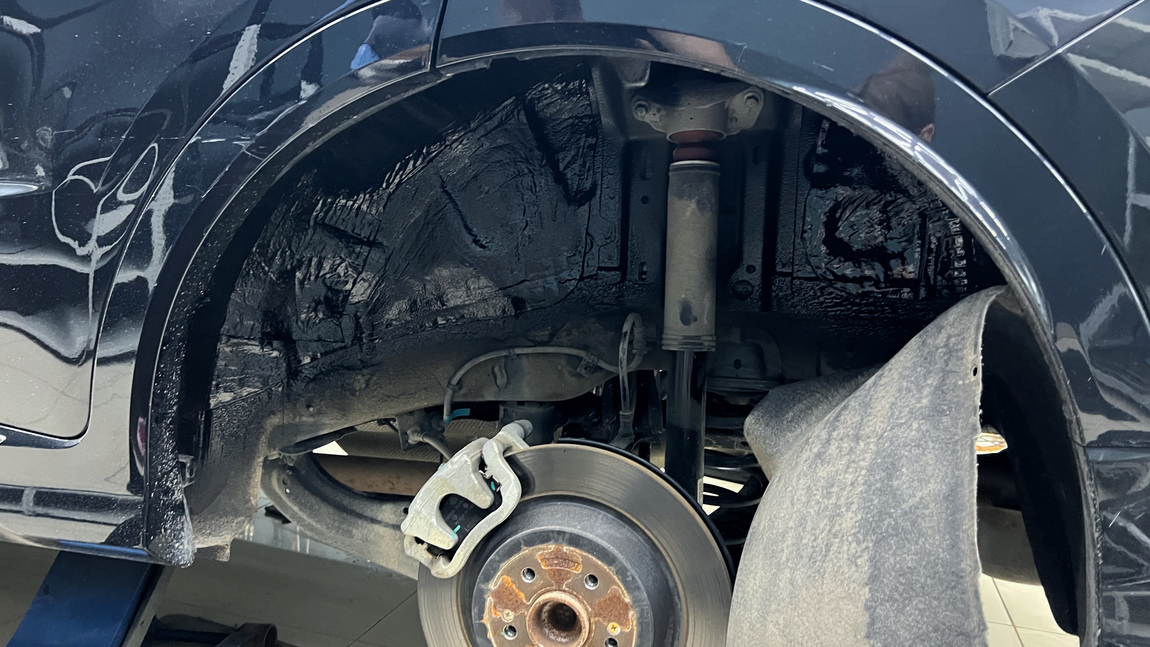 Виброизоляция арок Джетур X70 Приступаем к шумоизоляции арок автомобиля. Снимаем колеса и подкрылки. Тщательно зачищаем и обезжириваем область оклейки у арок.